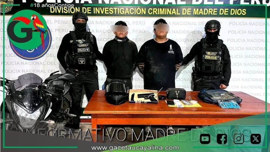 Madre de Dios.- La Policía Nacional del Perú, en la región Madre de Dios, logró desarticular a una peligrosa banda delictiva conocida como "Los Hermanos Flores", dedicada al robo agravado. Esta intervención se llevó a cabo gracias a la rápida acción del escuadrón Los Halcones, quienes patrullaban en la zona 1 de mayo cuando detectaron a dos personas desplazándose de forma sospechosa a bordo de una motocicleta sin placa.