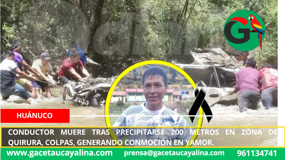 Huánuco.- La tranquila mañana de ayer 2 de diciembre, se convirtió en una tragedia para la comunidad de Yamor, en el distrito de Colpas, provincia de Ambo. Jaime Condezo Advíncula, de 41 años, perdió la vida de manera instantánea luego de que el vehículo que conducía se precipitara a un abismo de aproximadamente 200 metros en la zona conocida como Quirura. El siniestro ocurrió poco después de las 6:00 a. m., dejando en luto a su familia y a los pobladores que lo conocían.