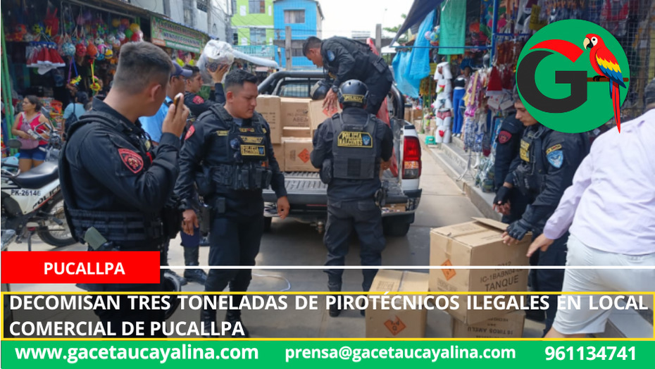 Pucallpa.- Un total de tres toneladas de material pirotécnico almacenado de manera ilegal y peligrosa fue incautado durante un operativo de fiscalización realizado por la Municipalidad Provincial de Coronel Portillo en un establecimiento comercial ubicado en la zona conocida como “El Huequito”, en la ciudad de Pucallpa.