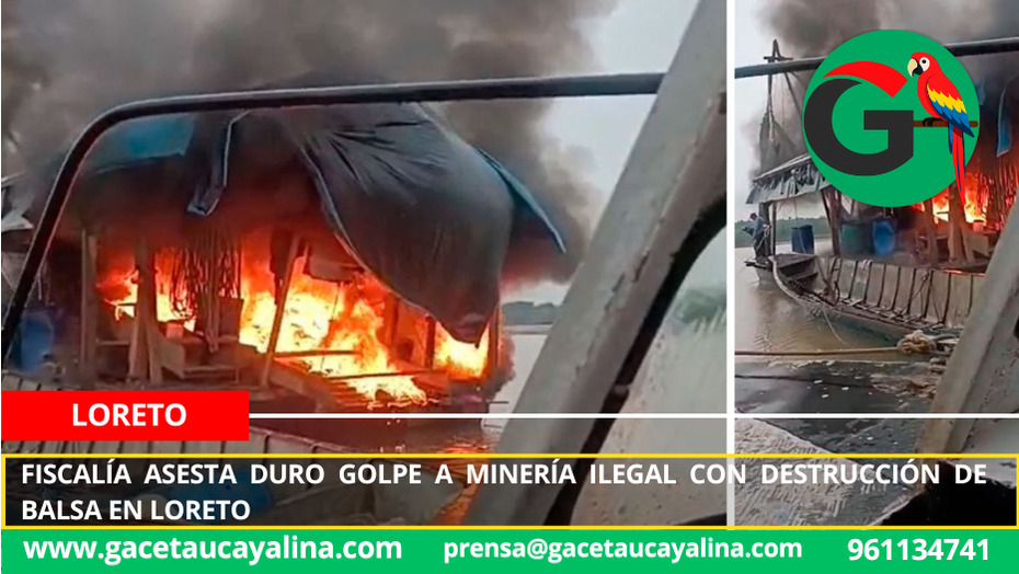 Loreto.- La Fiscalía Especializada en Materia Ambiental (FEMA) de Loreto–Sede Nauta asestó un nuevo golpe contra la minería ilegal en la Amazonía, al lograr la destrucción de una balsa draga, insumos químicos altamente contaminantes como mercurio y diversos equipos empleados en la extracción ilícita de minerales en el río El Tigre.
