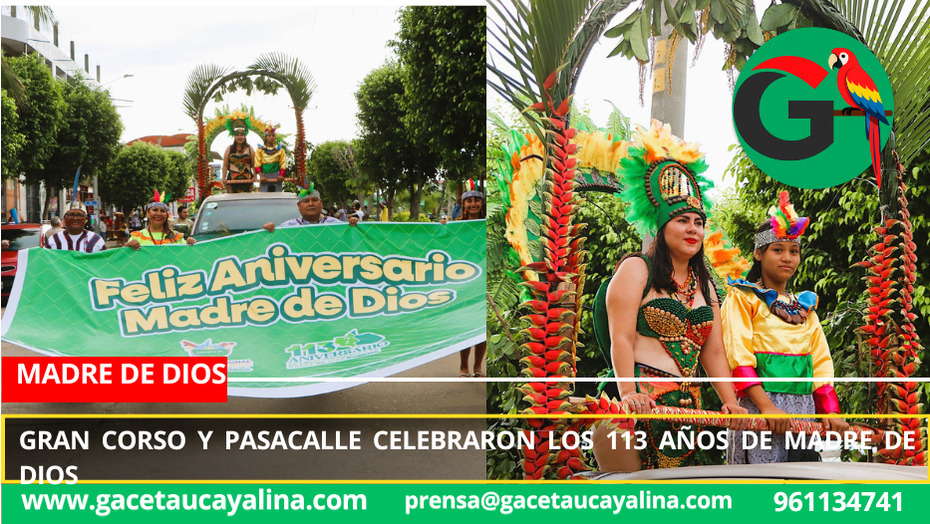 Madre de Dios.- Con un colorido y multitudinario Gran Corso y Pasacalle, la región Madre de Dios rindió un emotivo homenaje por sus 113 años de creación política. La actividad fue organizada por el Gobierno Regional de Madre de Dios (Goremad) y contó con la destacada participación de entidades públicas, privadas, gerencias y direcciones regionales.