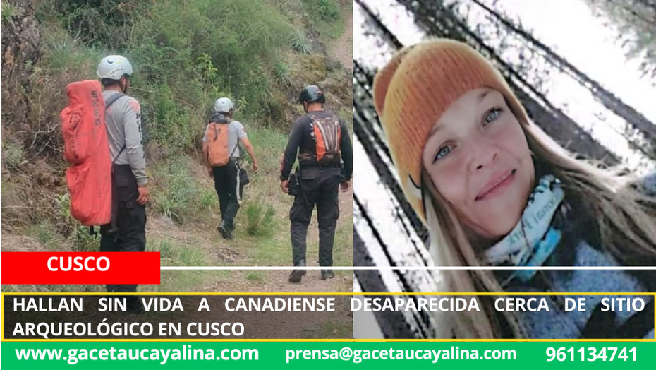 Hallan sin vida a canadiense desaparecida cerca de sitio arqueológico en Cusco