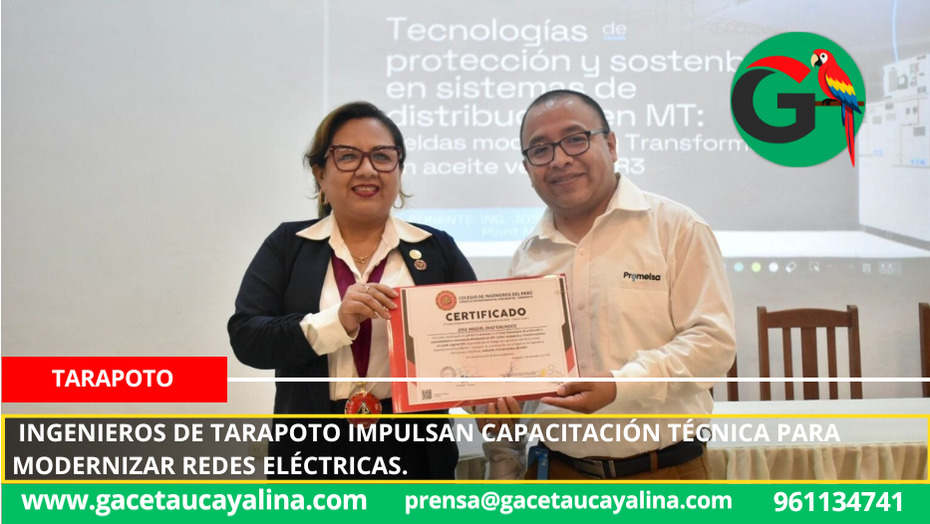 Tarapoto.- Con el propósito de actualizar conocimientos y promover soluciones más seguras, eficientes y sostenibles para los sistemas de distribución eléctrica, el Capítulo de Ingenieros Mecánicos y Eléctricos del Colegio de Ingenieros del Perú - Consejo Departamental San Martín (CIP CDSM) Tarapoto organizó una importante jornada de capacitación técnica, dirigida a profesionales del sector energético de toda la región.