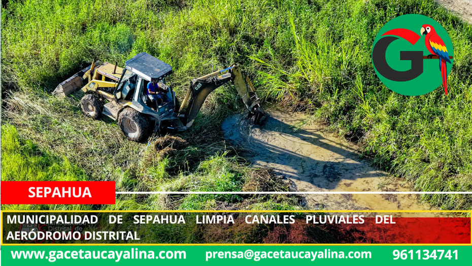 Sepahua.- Con el objetivo de prevenir riesgos y garantizar la operatividad del aeródromo de Sepahua, la Municipalidad Distrital de Sepahua, a través de la Gerencia de Servicios Municipales y Gestión Ambiental, ejecutó trabajos de limpieza y mantenimiento de los canales pluviales que rodean esta infraestructura estratégica para la conectividad aérea del distrito.