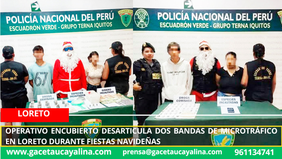 Loreto.- Un operativo policial encubierto permitió la desarticulación de dos presuntas bandas criminales dedicadas a la microcomercialización de drogas en el distrito de Punchana, en la región Loreto, como parte de las acciones preventivas ejecutadas por la Policía Nacional del Perú en vísperas de las fiestas navideñas.