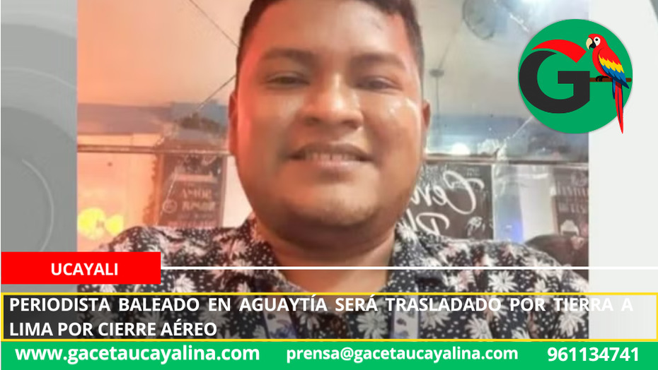 Ucayali.- El periodista Mitzar Castillejos Tenazoa, herido tras un ataque armado en la ciudad de Aguaytía, será trasladado a Lima por vía terrestre debido a la suspensión de vuelos en el aeropuerto de Tingo María, situación que prolongará su viaje por al menos diez horas.