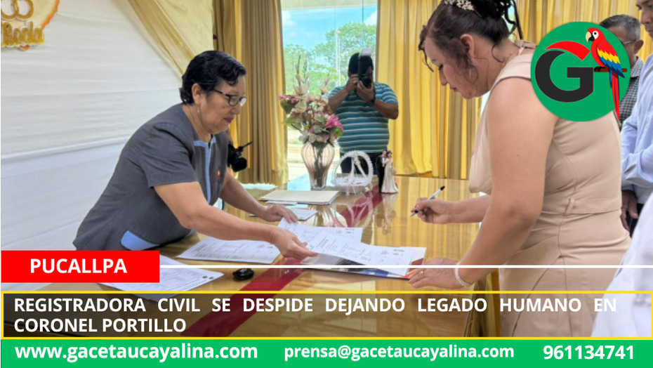 Pucallpa.– En una ceremonia cargada de emoción y significado institucional, la registradora civil Gilma Vargas, de 70 años, celebró su último matrimonio civil tras 47 años de servicio ininterrumpido en la Municipalidad Provincial de Coronel Portillo, marcando así el cierre de una trayectoria ejemplar dedicada al servicio público y a la formalización legal de cientos de familias en la región Ucayali.