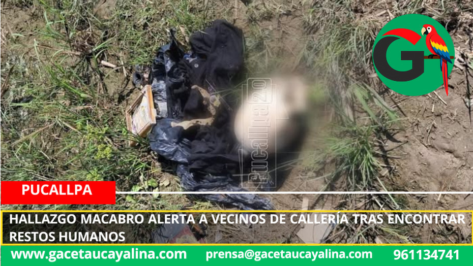 Un hallazgo macabro generó conmoción y preocupación entre los vecinos del distrito de Callería, en la ciudad de Pucallpa, luego de que personal especializado de la Sección de Delitos de la Comisaría de Pucallpa encontrara partes óseas humanas, específicamente un cráneo y una mandíbula, en las inmediaciones del reloj público, a orillas del río Ucayali.