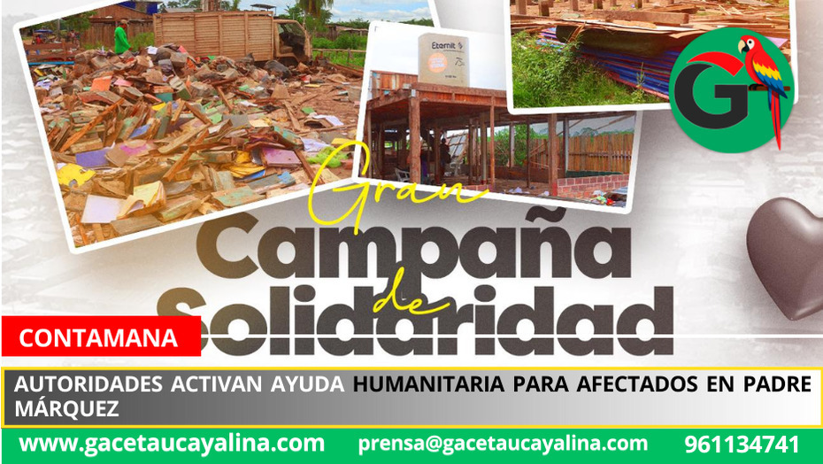 Como acción complementaria, se ha convocado a una campaña solidaria para el martes 20 de enero, a partir de las 9:00 a. m., en la Plaza Alfredo Vargas Guerra, bajo el lema “Unidos, Contamana Solidaria”.