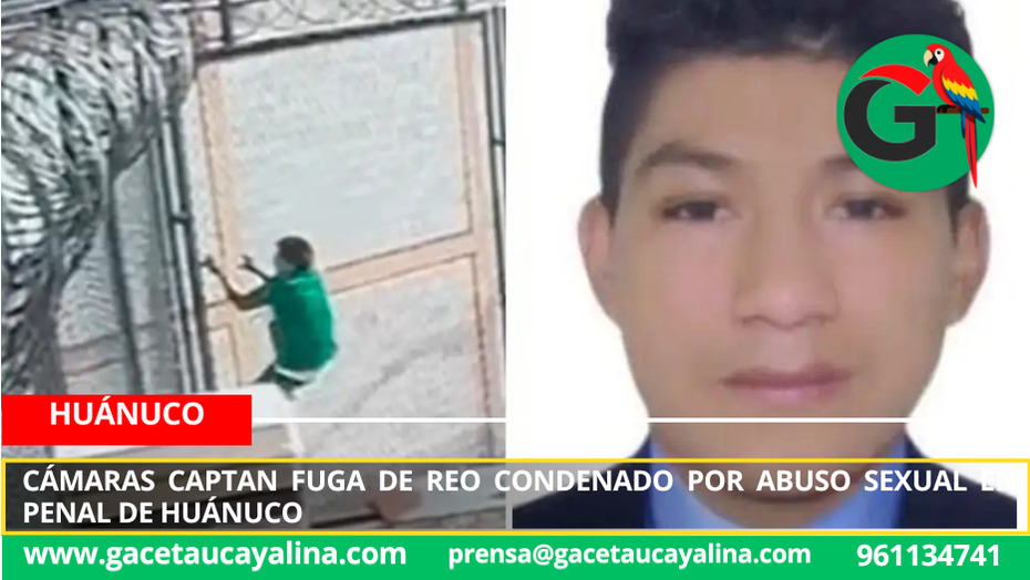 Huánuco.- El Instituto Nacional Penitenciario (INPE) confirmó la fuga de Rolando Gerónimo Mateo (26), quien cumplía condena por abuso sexual en el pabellón 3 del Establecimiento Penitenciario de Huánuco. El escape ocurrió alrededor de las 4:20 p.m. del jueves 1 de enero y fue captado por las cámaras de seguridad, donde se observa al reo escalando rejas y paredes para huir.