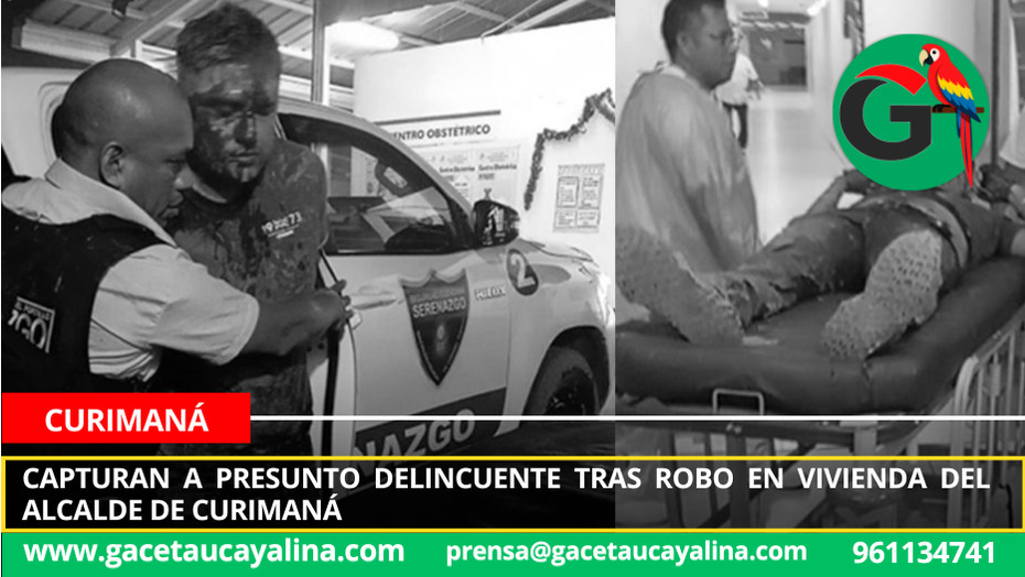 Curimaná.- La rápida reacción del sistema de videovigilancia y el trabajo articulado entre Serenazgo y la Policía Nacional del Perú permitieron la captura de uno de los presuntos delincuentes implicados en el robo a la vivienda del alcalde de Curimaná, Cléver Montes, ocurrido durante la madrugada de ayer.