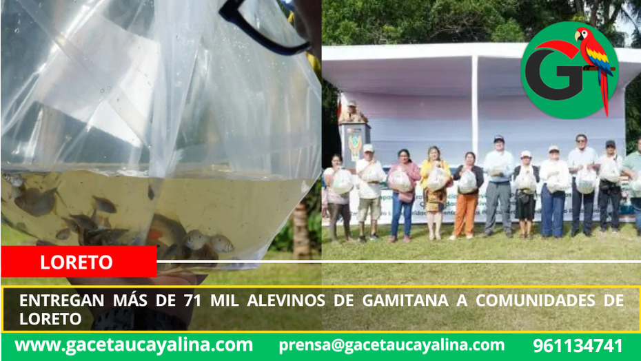 Loreto.- Un total de 19 comunidades del departamento de Loreto fueron beneficiadas con la entrega de 71 400 alevinos de gamitana, como parte de una estrategia del Ministerio del Ambiente (Minam), ejecutada a través del Instituto de Investigaciones de la Amazonía Peruana (IIAP), para impulsar la seguridad alimentaria y dinamizar la economía familiar mediante la piscicultura sostenible de especies nativas.