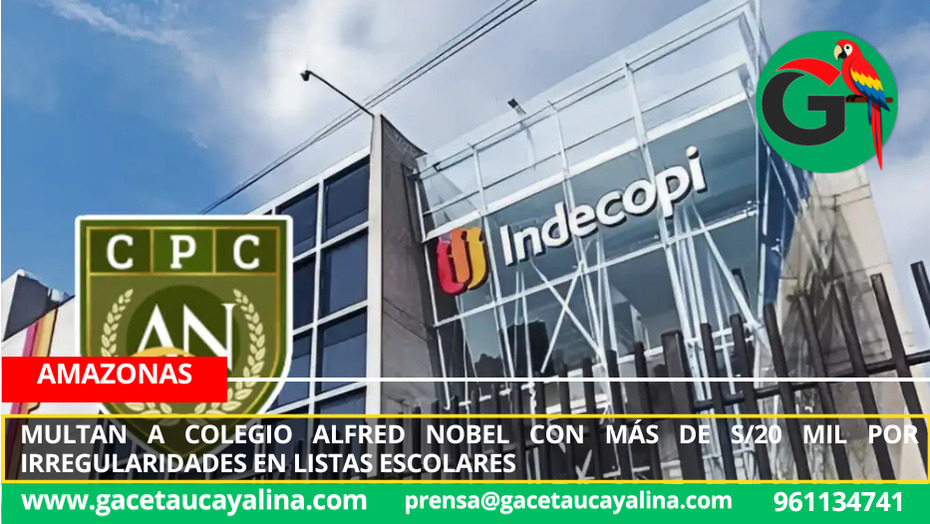 Amazonas.- La Comisión de la Oficina Regional del Indecopi en Amazonas impuso una multa de 3,81 UIT, equivalente a S/ 20.383,50, al colegio particular Alfred Nobel por incumplir la normativa relacionada con el Libro de Registro de Incidencias sobre convivencia escolar y por vulnerar los derechos de madres, padres y estudiantes.