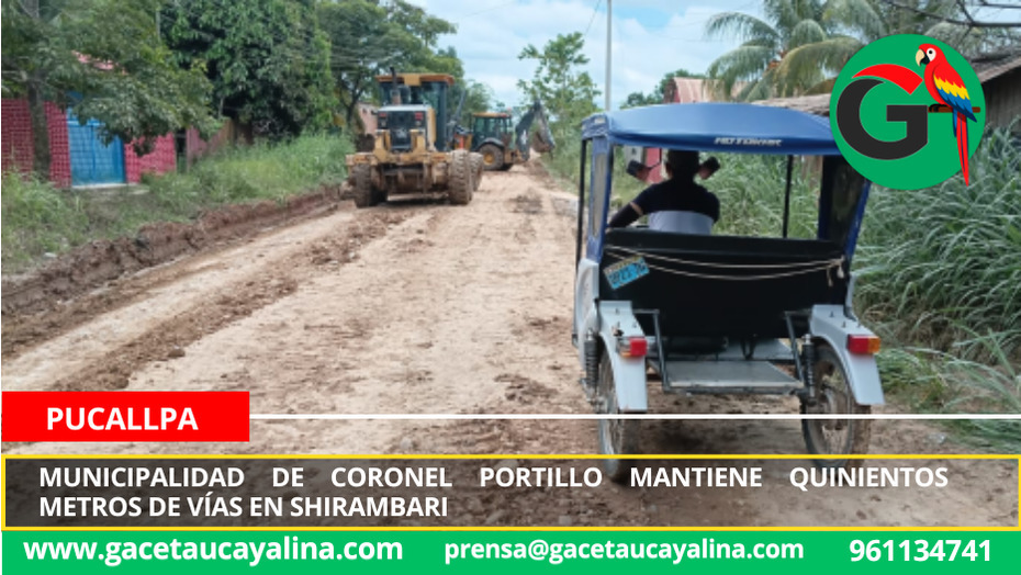 Palabras clave SEO: Municipalidad Provincial de Coronel Portillo, mantenimiento vial Shirambari, Yarinacocha, Ucayali, Plan de Mantenimiento de Vías, infraestructura urbana, motoniveladora, cuneteado, transitabilidad, obras municipales.