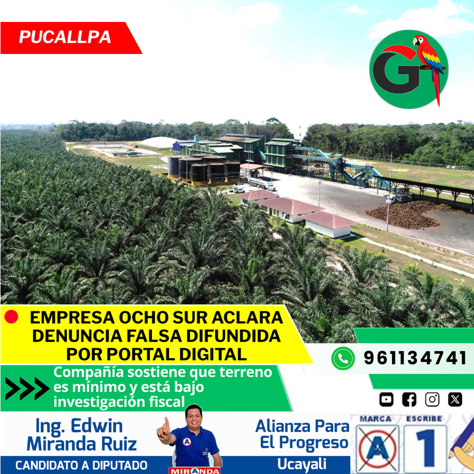 Pucallpa.- La empresa Ocho Sur aclaró públicamente una información difundida de manera engañosa por el portal digital Infórmate Ucayali y replicada por otros medios, en la que se afirma que la compañía estaría ocupando ilegalmente un terreno de un supuesto agricultor, versión que carece de sustento real y legal.