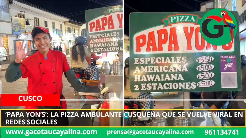 Cusco.- La originalidad en la gastronomía cusqueña sorprende nuevamente. Un joven emprendedor ha captado la atención de miles de usuarios en TikTok tras presentar una propuesta poco convencional para comer pizza en la Ciudad Imperial. Su negocio ambulante, denominado “Papa Yon’s”, se volvió viral tanto por su peculiar nombre, que recuerda a una conocida cadena internacional como por su atrevida combinación de sabores.