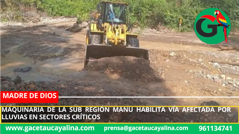 En Madre de Dios,la Sub Región Manu, a través de la Unidad Ejecutora 1392, activó de manera inmediata sus protocolos de respuesta ante la emergencia registrada en la carretera que conduce hacia la provincia del Manu, tras las intensas lluvias que vienen afectando a la zona en los últimos días y que ocasionaron serios daños a la infraestructura vial.