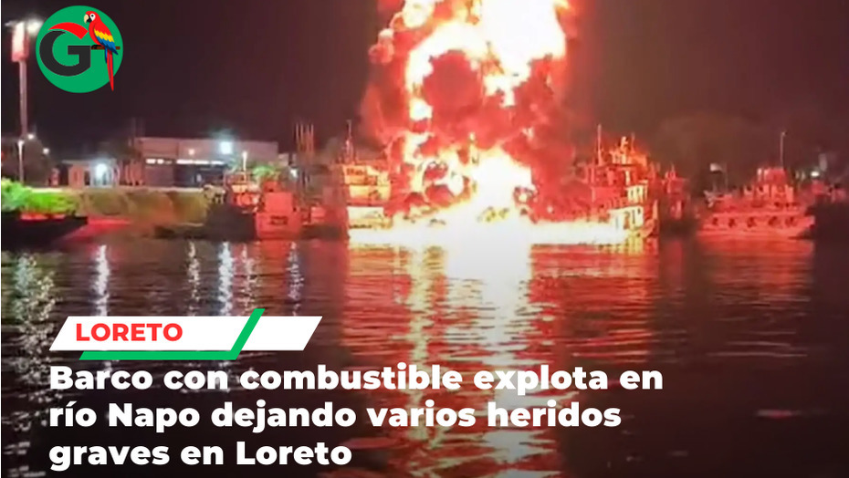 Iquitos / Loreto.- Una explosión seguida de un incendio en una embarcación fluvial que transportaba combustible, materiales y residuos peligrosos dejó al menos 12 personas heridas en el río Napo, en el sector Ganso Azul, distrito de Iquitos, provincia de Maynas, región Loreto, informó el Centro de Operaciones de Emergencia Nacional (COEN).