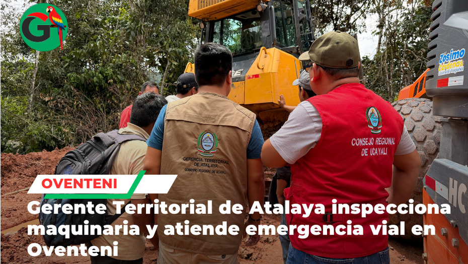 Oventeni / Atalaya.- La Gerencia Territorial de Atalaya del Gobierno Regional de Ucayali (GOREU), en coordinación con un representante del Consejo Regional, realizó labores de inspección y articulación de acciones en el centro poblado de Oventeni, con el objetivo de garantizar la atención de emergencias viales y mejorar la conectividad de las comunidades rurales.