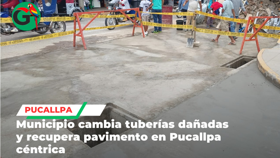 Pucallpa.- La Municipalidad Provincial de Coronel Portillo (MPCP) ejecutó trabajos de emergencia para reparar el pavimento y la tubería de desagüe colapsada que provocaron el hundimiento de la vía en la intersección de los jirones 7 de Junio con Independencia, en Pucallpa, frente al mercado de abastos n.º 2, una zona de intenso tránsito vehicular y peatonal.